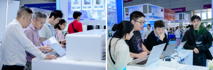 六联智能展台AI PC体验区开放多款新品试用,观众可近距离感受AI PC的魅力。工作人员现场也展示了会议纪要自动生成、图像快速生成、AI辅助设计等应用,不少参观者在体验后纷纷表示:“现在的电脑真的具备‘思考’能力,并非噱头。”